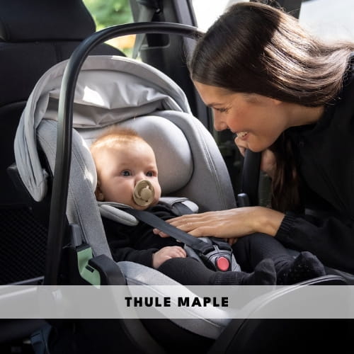 Thule Maple + Alfi Base, oceniony na 1,6 zdobył najwyższe noty dzięki doskonałym wynikom w testach zderzeniowych i łatwej obsłudze. Przeznaczony dla dzieci o wzroście 40–75 cm i wadze nieprzekraczającej 13 kg, wyłącznie tyłem do kierunku jazdy. Jest to nowość na rynku fotelików, wyróżnia się futurystycznym designem, ale jak widać i bezpieczeństwem.