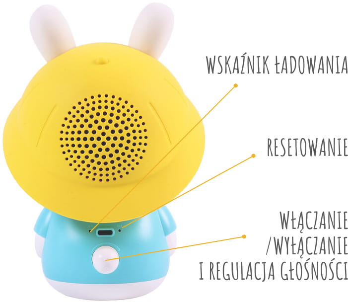 Oczywiście, Baby Bunny, tak jak jego starci bracia, daje możliwość odtwarzania już wgranych piosenek a także umożliwia wgranie na jego dysk własnych dźwięków czy muzyki. Świecące uszka króliczka będą źródłem delikatnego światła - Alilo będzie ulubioną lampką nocną Twojego dziecka.