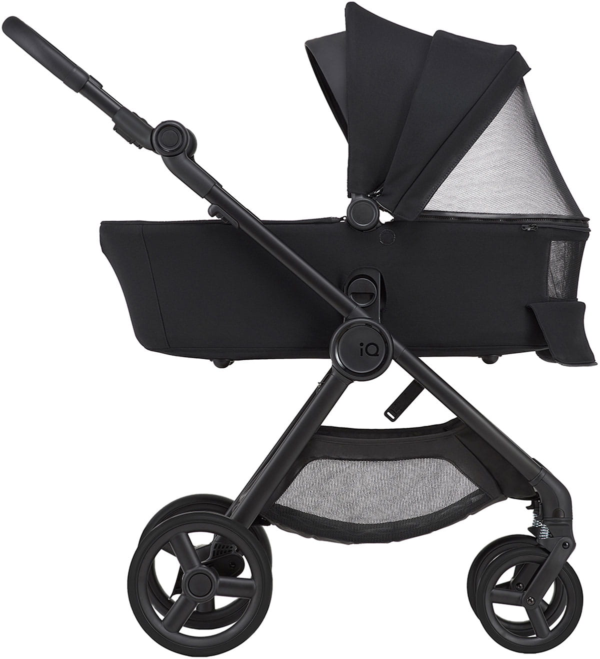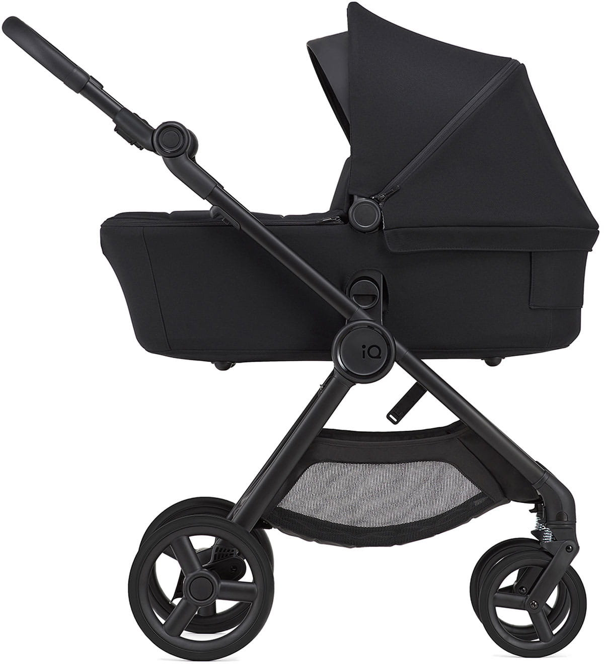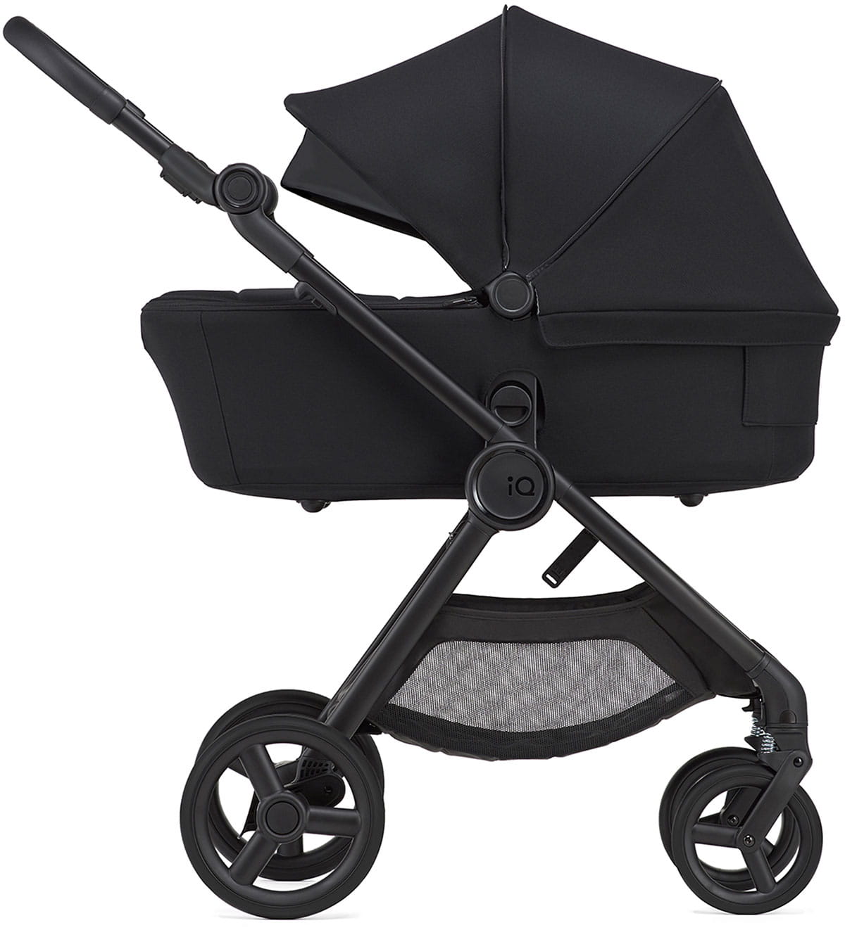 Budka w wózku odgrywa bardzo ważną rolę ochronną. Ta w modelu IQ jest wykonana z najwyższej jakości materiałów, co doskonale sprawdza się podczas długiego korzystania z wózka zarówno latem jak i zimą.