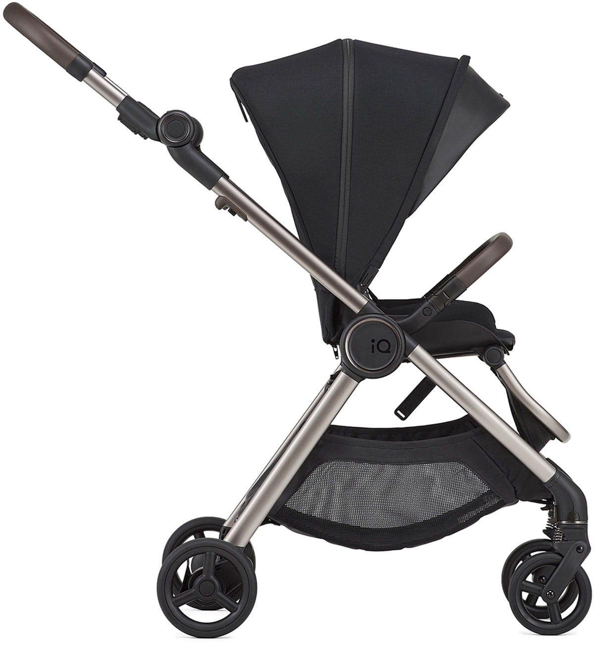 Kupując wózek IQ otrzymujesz : wersję wózka z gondolą, wersję ze standardowym siedziskiem spacerowym oraz dużymi kołami na każdy teren a także zestaw do małej spacerówki typu buggy, która osiąga wymiary bagażu podręcznego. Dwa zestawy kół i dwie rączki do prowadzenia, tylko tyle wystarczy, żeby przekształcić jeden duży wózek z małą, podręczną spacerówkę.