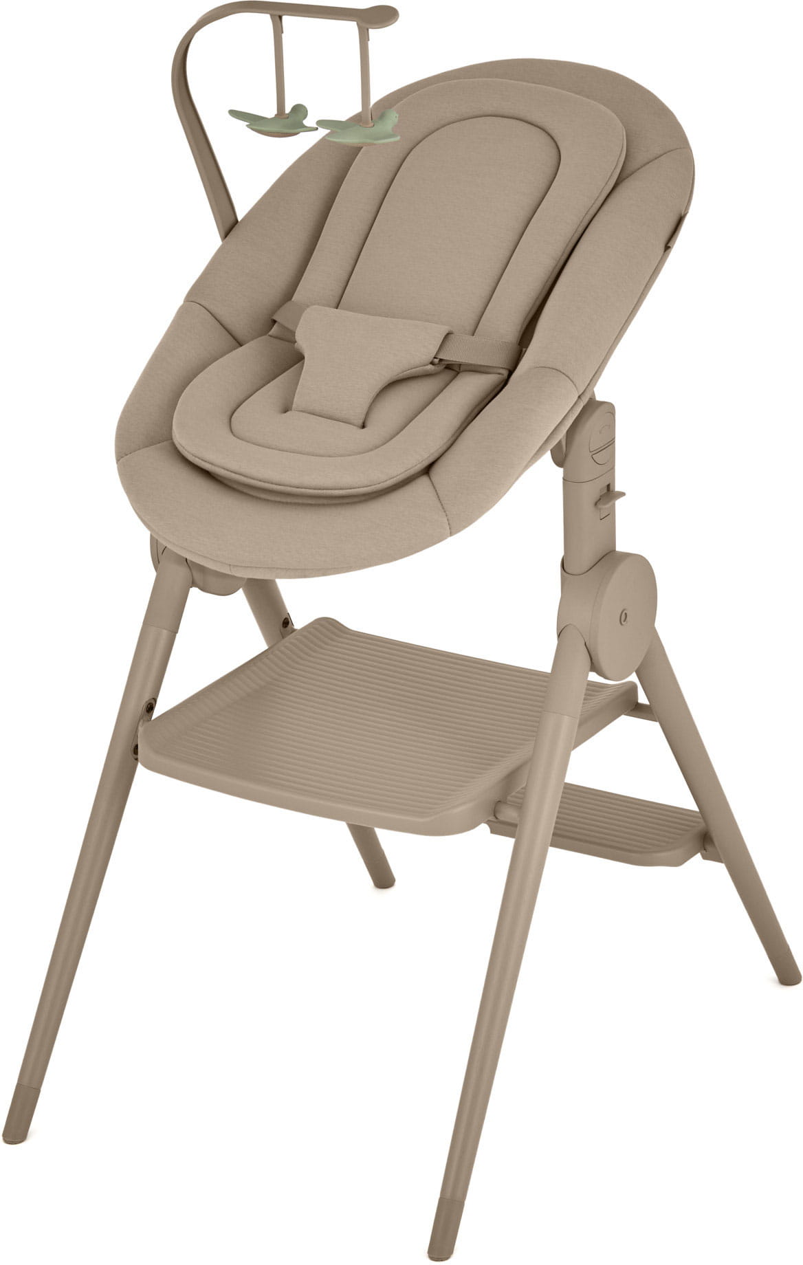 - ergonomiczny komfort - regulacja oparcia i wysokości w leżaczku oraz krzesełku, miękkie wkładki i podnóżek zapewniają wygodę na każdym etapie rozwoju;