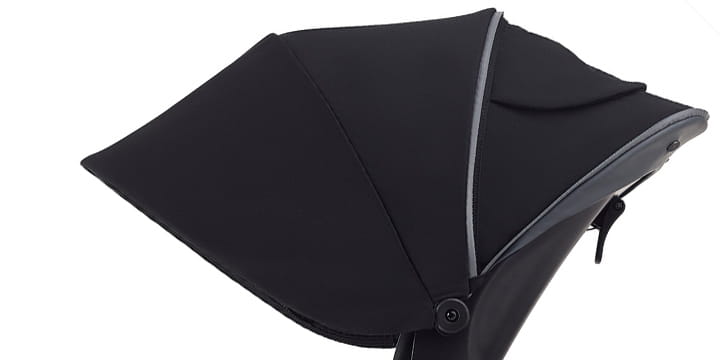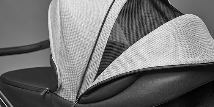Wyjątkowa budka z dodatkową sekcją przedłużającą ochrania dziecko w każdych warunkach atmosferycznych, bez względu na to czy świeci słońce czy pada deszcz, ponieważ materiały w wózku są wodoodporne.
