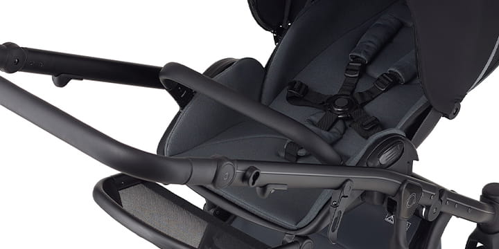 Regulowany i możliwy do zdjęcia pałąk w wózku m/type to dodatkowa ochrona oraz miejsce, gdzie można zawiesić np. ulubioną maskotkę.