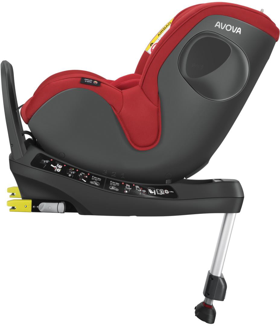 - Baza z nogą stabilizującą: Dodatkowy punkt podparcia poprawiający stabilność i bezpieczeństwo, chroniący przed rotacją fotelika podczas wypadku.