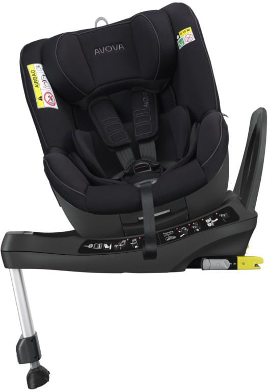 - Baza z nogą stabilizującą: Dodatkowy punkt podparcia poprawiający stabilność i bezpieczeństwo, chroniący przed rotacją fotelika podczas wypadku.
