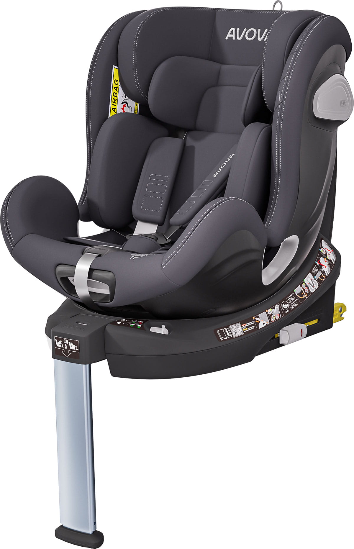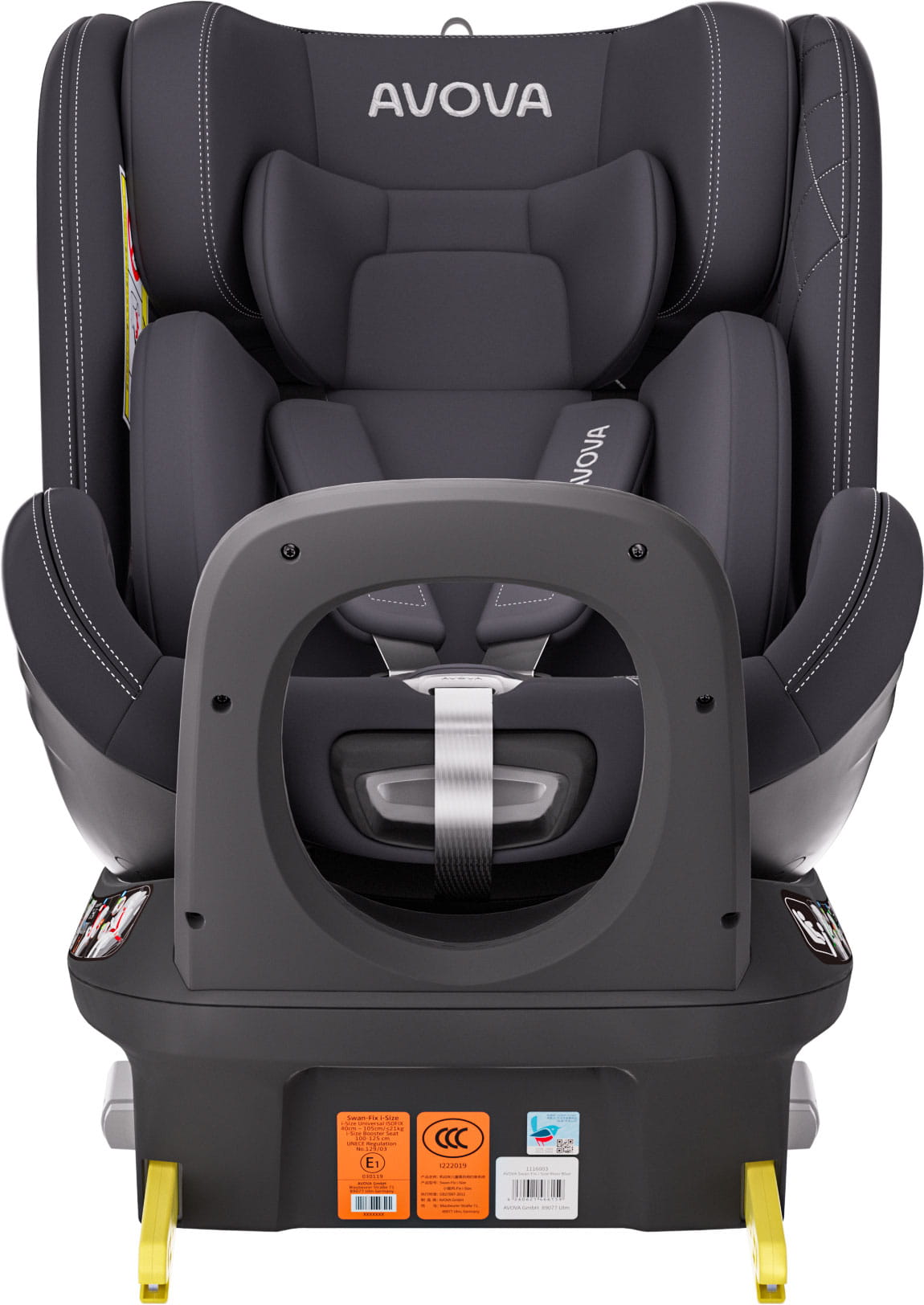 Avova Swan-Fix i-Size to fotelik samochodowy dla dzieci o wadze 9-25 kg oraz wzroście 40-125 cm. Fotelik został zaprojektowany w Niemczech, stworzono go z wysokiej jakości materiałów. Pełen obrót o 360 stopni pozwoli rodzicowi swobodnie obrócić fotelik zarówno w celu zmiany kierunku jazdy, jak i po to, aby wygodnie włożyć malucha do fotelika. Avova Swan-Fix to fotelik z ISOFIX, który jest łatwy w montażu.