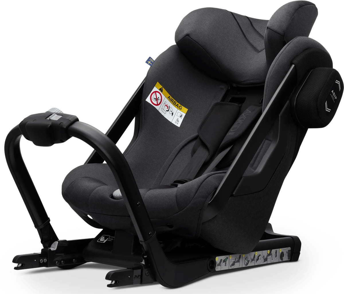 Axkid One i-Size zapisze się na kartach historii jako pierwszy fotelik umożliwiający montaż tyłem, za pomocą łączy Isofix, aż do osiągnięcia przez dziecko 23 kg wagi i 125 cm wzrostu. Oznacza to, że masz możliwość przewożenia tyłem do kierunku jazdy nawet 7-letnie dziecko!