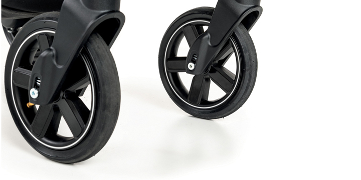 Wersja Look Air wyróżnia się pompowanymi kołami, które dzięki swej miękkiej strukturze idealnie dopasują się do terenu. O ile podstawowa wersja wózka może pochwalić się umiejętnością płynnej jazdy po nierównej nawierzchni, tak model Look Air opanował tę sztukę do perfekcji!