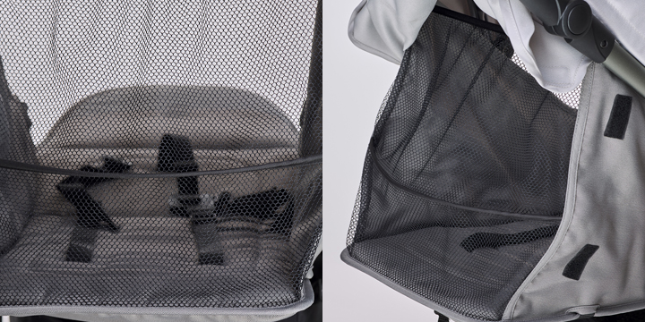 Po wyregulowaniu oparcia do pozycji leżącej, Twoje dziecko jest dodatkowo chronione dzięki siatce Safety Net. Co więcej, jej zastosowanie nie kończy się na pełnieniu funkcji ochronnej, ale także zapewnia doskonałą wentylację powietrza w upalne dni.