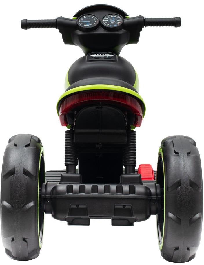 Sterowanie motocyklem odbywa się poprzez naciśnięcie pedału na podnóżku, a po jego zwolnieniu motocykl hamuje. Sterowanie jazdą do przodu i do tyłu odbywa się poprzez przełączanie przycisku jazdy do tyłu. Tylne koła napędzane są przez parę mocnych silników 6V/24W zasilanych z akumulatora 6V/7Ah.
