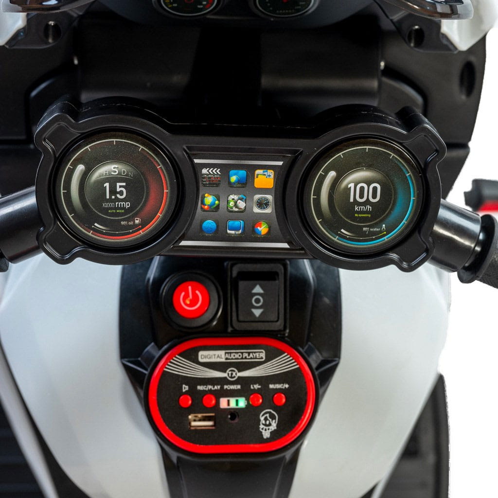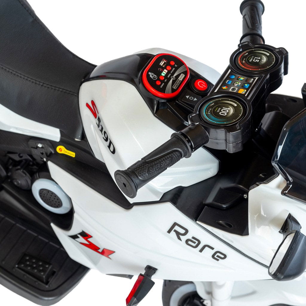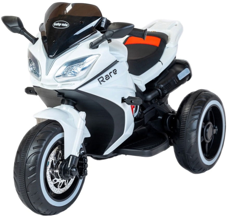 Motocykl Baby Mix Rare posiada baterię 6V 7Ah, oraz dwa motory 380 koni. Prosta funkcja uruchamiania jednym przyciskiem umożliwia jazdę do przodu i do tyłu.