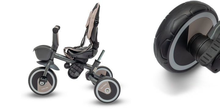 Baby Mix Relax łączy funkcjonalność rowerka, jeździka i spacerówki, stając się wielozadaniowym środkiem transportu, który zastąpi klasyczną spacerówkę. Niezależnie od nawierzchni, nieprzebijalne piankowe koła EVA zapewnią dziecku płynną i cichą jazdę, a rodzicowi – pełną kontrolę i spokój.
