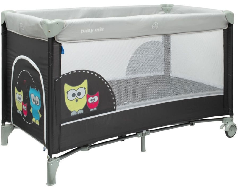 Baby Mix Sowa - łóżeczko turystyczne | Ciemnoszary