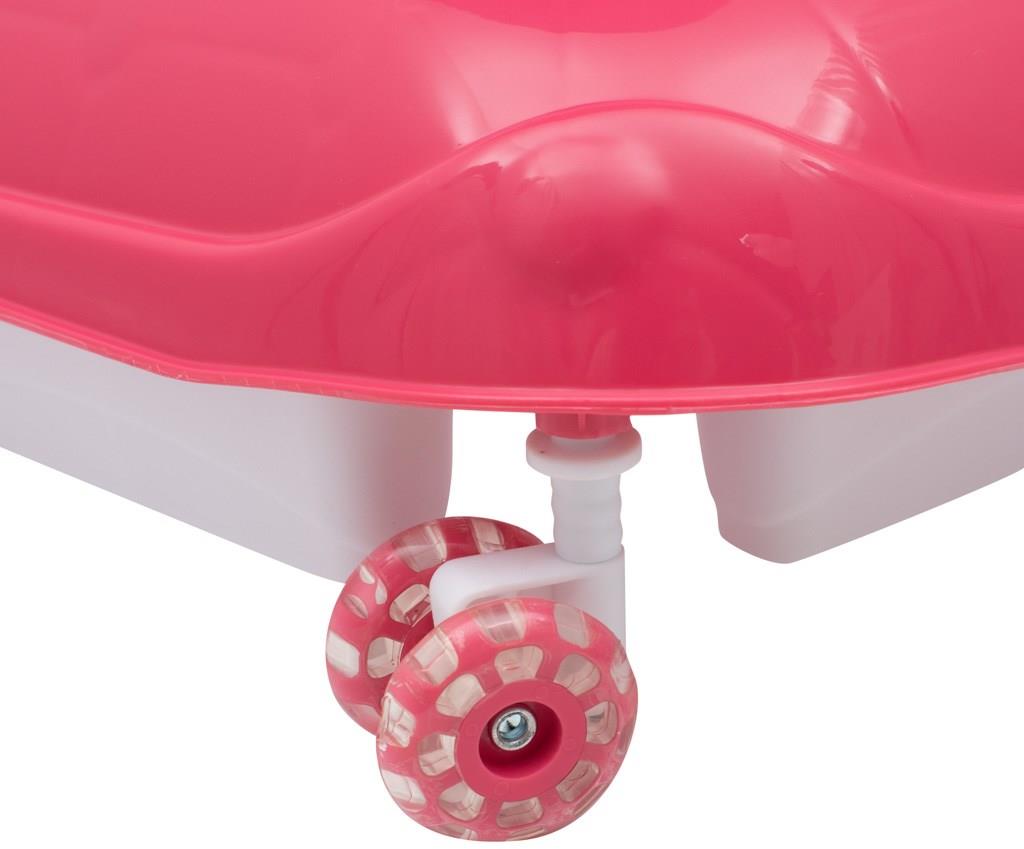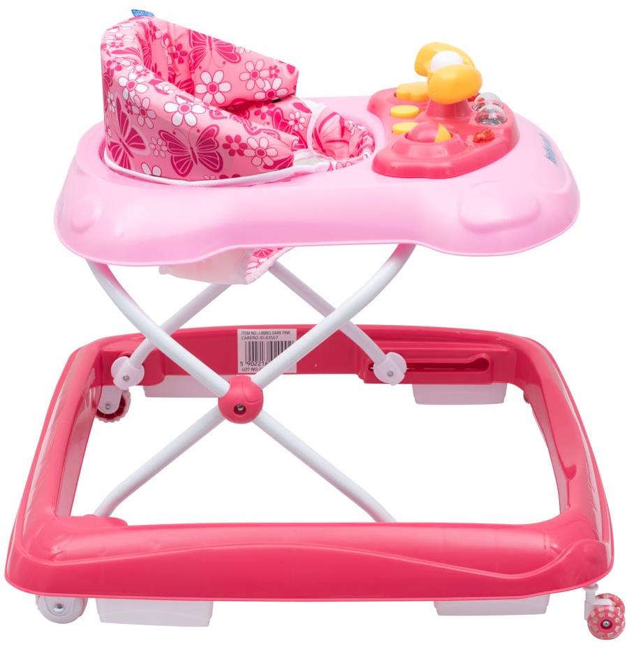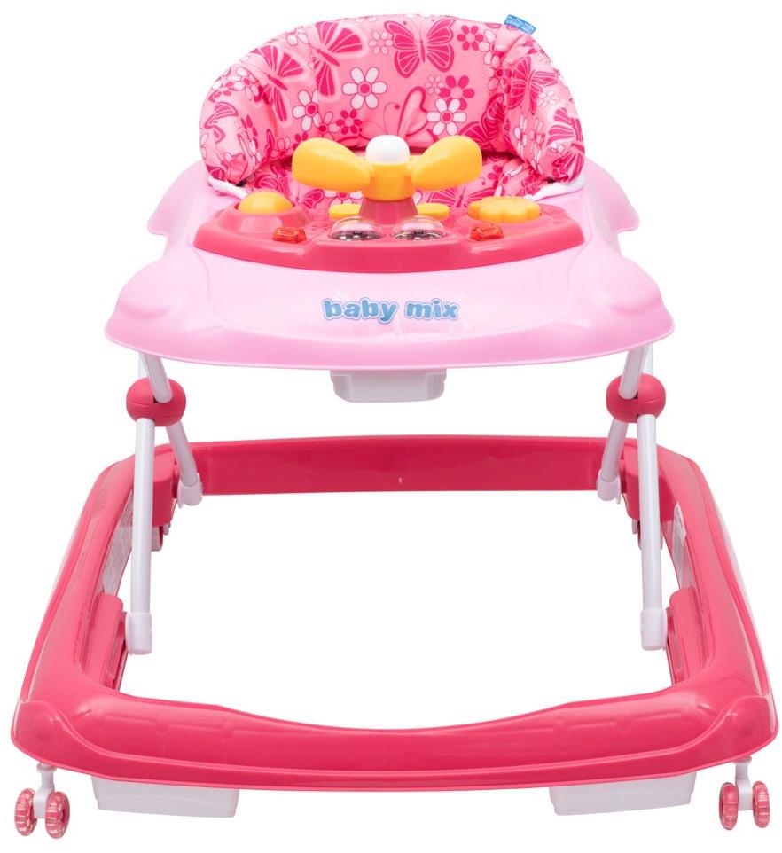 Multifunkcyjny chodzik dziecięcy Baby Mix z silikonowymi kółkami ułatwia naukę chodzenia. Chodzik został wyposażony w wygodne, specjalnie wyprofilowane siedzonko które zapewnia odpowiednią postawę dla kręgosłupa. Wielofunkcyjny panel zabawowy: z efektami świetlnymi, kierownicą z klaksonem, którą można obracać, kwiatek, grzechotkę, dwa przyciski, które grają melodie i dwa światełka. Piękny chodzik z zabawkami oczaruje małych odkrywców i pozwoli im bawić się jeszcze dłużej. Jeździk został wyposażony w specjalny system zabezpieczający przed wywrotką, który zapewni komfort i bezpieczeństwo maluchowi.