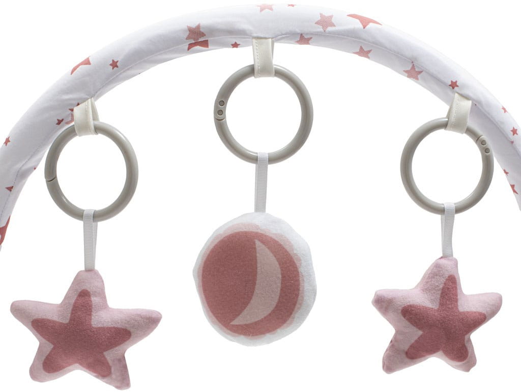 Odczepiany pałąk z zabawkami sprawi, że wyobraźnia maluszka zacznie działać.