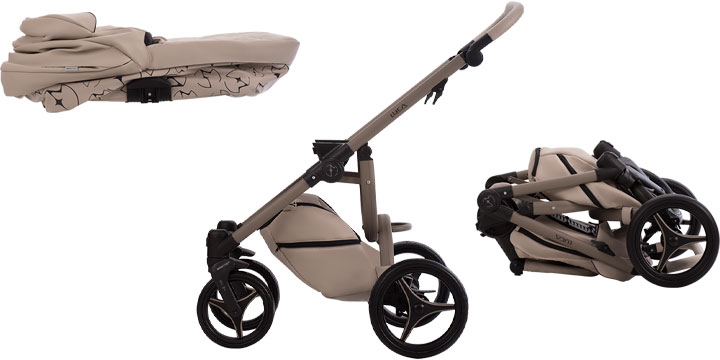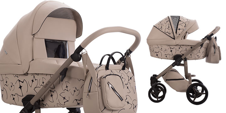 Wersja PRO tego wózka posiada gondolę, którą obszyto tapicerką z eko-skóry.