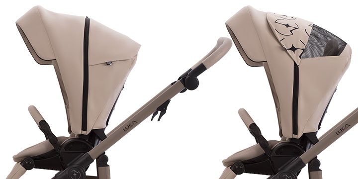 Gondola jest przestronna, ale też lżejsza – waży tylko 3,5 kg, więc łatwo ją przenieść z miejsca na miejsce. Duża budka skutecznie chroni malucha przed słońcem, wiatrem czy deszczem. Odkrywana siatka wentylacyjna zapewnia dobrą cyrkulację powietrza, co sprawia, że podczas upalnych spacerów dziecko poczuje się bardziej komfortowo. Dodatkowo gondola ma specjalny panel przeciwwiatrowy z okienkiem – osłania przed silnym wiatrem, a jednocześnie pozwala mamie zerknąć, co się dzieje w środku.