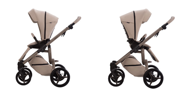 Siedzisko spacerówki można zamontować w obu kierunkach, więc maluch ma wybór: albo obserwuje świat z pomocą rodzica, albo odkrywa go na własną rękę, siedząc przodem do kierunku jazdy.