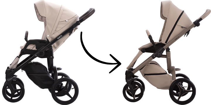 Składanie wózka Bebetto Luca to teraz bułka z masłem. Nieważne, czy siedzisko jest przodem czy tyłem – stelaż złożysz bez kombinowania, nawet z zamkniętymi oczami. Składana na płasko gondola wózka pozwoli Ci wygodnie przetransportować wózek.