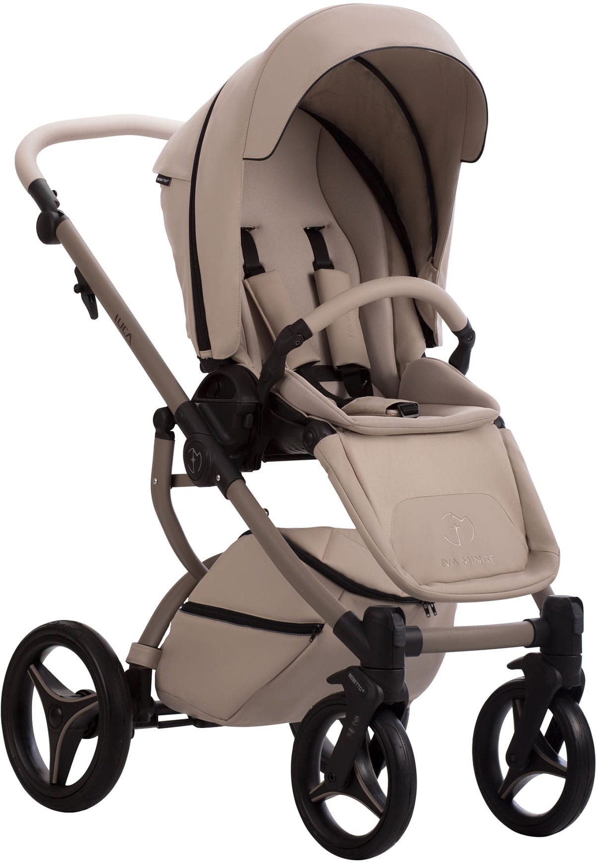Bebetto Luca PRO x Eva Minge wyróżnia się maksymalnym dopracowaniem każdego detalu, najwyższej funkcjonalności i odmienionym, przeprojektowanym siedziskiem spacerowym. Dobrze znany wózek 2w1 Bebetto Luca PRO w kolekcji Eva Minge zachowuje swoją funkcjonalność a przy tym zyskuje całkiem nowy design. To wszystko sprawia, że otrzymasz sprawdzone rozwiązanie, dbające o komfort Twojej rodziny.