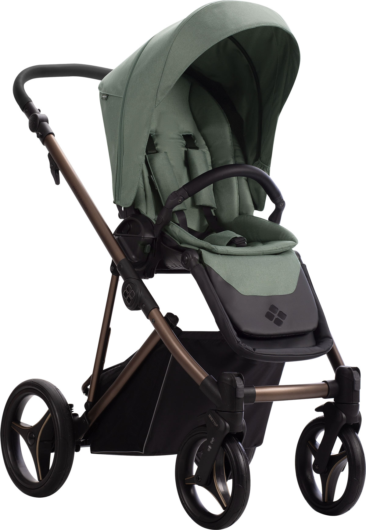 Koła Flexy Wheels są bezobsługowe a to oznacza mniej komplikacji. Zaawansowana amortyzacja w Bebetto Pelpasso oraz systemy SAS i DMS ułatwią przemieszczanie się z maluszkiem po mieście lub w bardziej wymagających terenach.