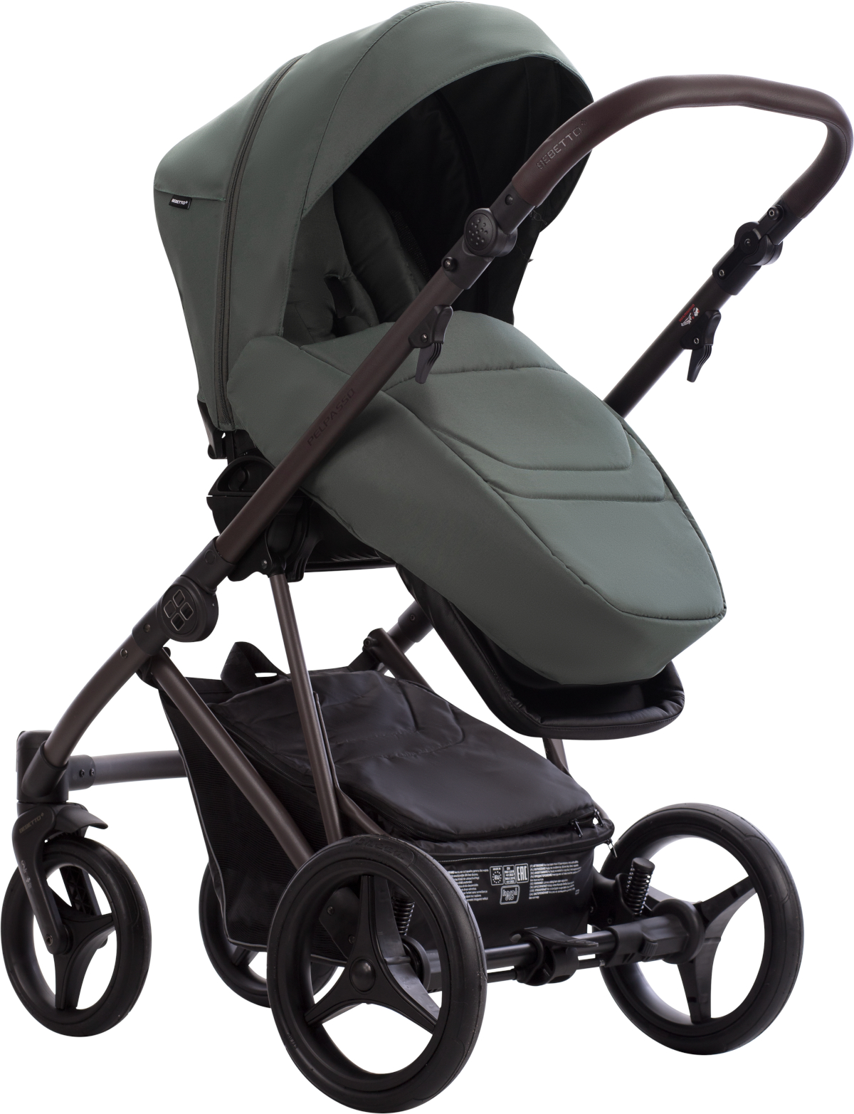 Oferowany model wózka Bebetto występuje w dwóch wersjach: standardowej z materiałową tapicerką oraz w wersji PRO z tapicerką z ekoskóry.