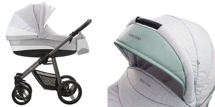 Bebetto Vulcano jest lekkim niezwykle funkcjonalnym wózkiem, który łączy w sobie najlepsze rozwiązania techniczne z nowoczesnymi tkaninami. Ten model wyposażony jest w plastikowy spód gondoli, który oprócz oczywistego waloru jakim jest utrzymanie go w czystości, posiada również możliwość regulowania oparcia z zewnętrznej strony. Wyposażony także w dodatkową regulowaną wentylację która umożliwia swobodną cyrkulację powietrza we wnętrzu gondoli.