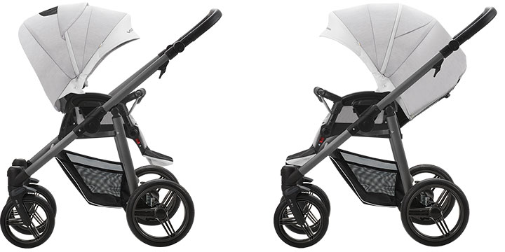 Siedzisko spacerowe posiada możliwość montażu przodem lub tyłem do kierunku jazdy. Dzięki temu już od momentu kiedy dziecko zacznie siadać możecie wykorzystać spacerówkę. Im dziecko starsze, tym bardziej zainteresowane otaczającym je światem, dlatego opcja jazdy przodem do otoczenia będzie dla dziecka niezwykle interesująca.