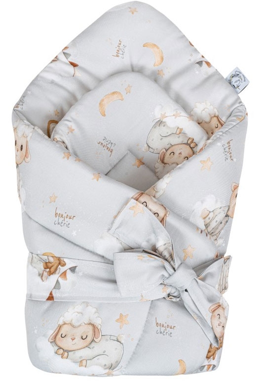 Bonjour Cherie - bambusowy becik, rożek niemowlęcy 74x74 cm | Owieczki