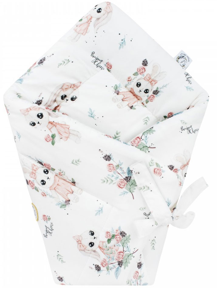 Bonjour Cherie - bambusowy becik, rożek niemowlęcy 74x74 cm | Romantyczny Królik