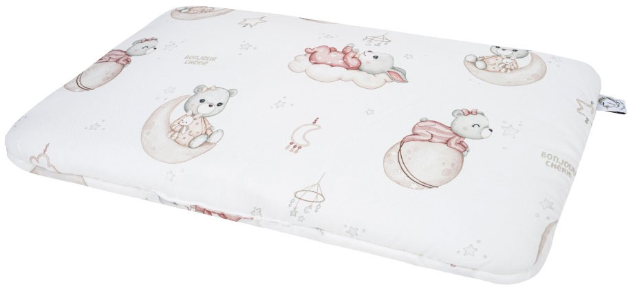 - Bezpiecznie płaska konstrukcja (ok. 3 cm): niska wysokość sprzyja wygodnej, stabilnej pozycji główki i tułowia od pierwszych miesięcy życia. Sprawdza się zarówno podczas nocnego snu, jak i krótkich drzemek w ciągu dnia. Jest uniwersalna: pasuje do łóżeczka, wózka i kosza Mojżesza;