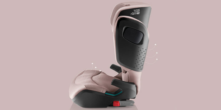 Otwory wentylacyjne zostały umiejscowione w przemyślany sposób, dzięki czemu dobrze wspiera komfort termiczny malucha. Połączenie otworów wentylacyjnych w skorupie wraz z siateczkową tkaniną siedziska (występującą wyłącznie w wersji STYLE) da ulgę podczas podróży w upale.