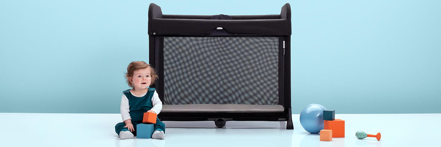 Boki łóżeczka zostały wykonane z przewiewnej siatki, która poprawia komfort w upalne dni i zwiększa bezpieczeństwo przez poprawę widoczności.
