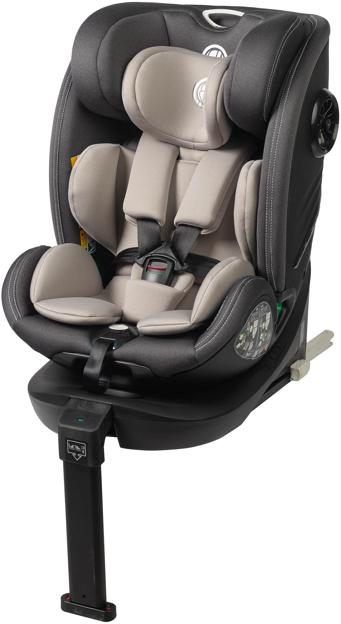 Intuicyjny mechanizm obrotu o 360 stopni ułatwia wkładanie i wyjmowanie dziecka z fotelika, a także szybkie ustawienie siedziska w odpowiednim kierunku jazdy. Ergonomiczny przycisk odpowiada za regulację pochylenia i obrót, dzięki czemu obsługa jest wyjątkowo prosta.