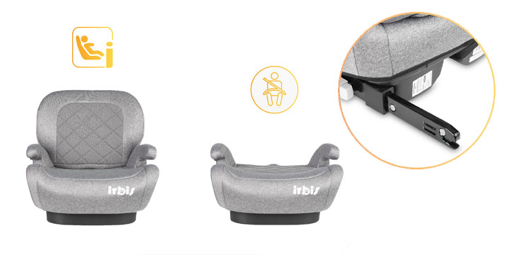 Irbis jest stworzony w zgodzie z normą i-Size, posiada złącza ISOFIX umożliwiające wygodny i stabilny montaż w samochodzie. Jego solidna i ergonomiczna konstrukcja pozwala zachować wysoki poziom bezpieczeństwa i komfortu pasażera.