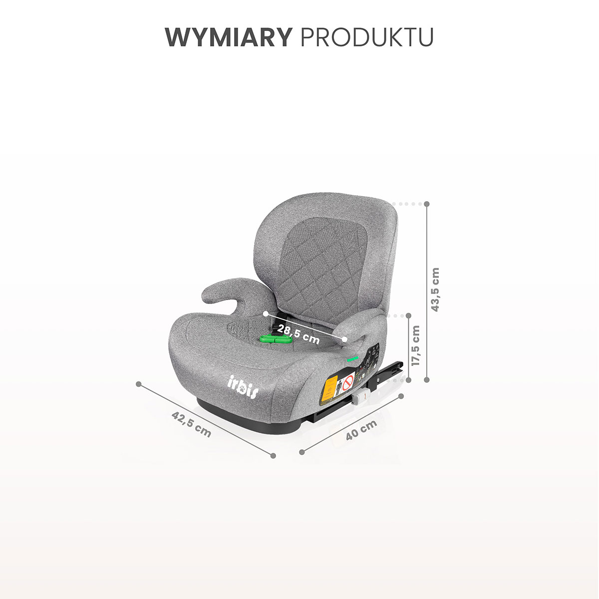 Caretero Irbis to fotelik samochodowy typu booster dla starszaków o wzroście 125-150 cm, które nie mogą już podróżować w standardowym foteliku samochodowym, a wciąż potrzebują zabezpieczenia i podwyższenia.