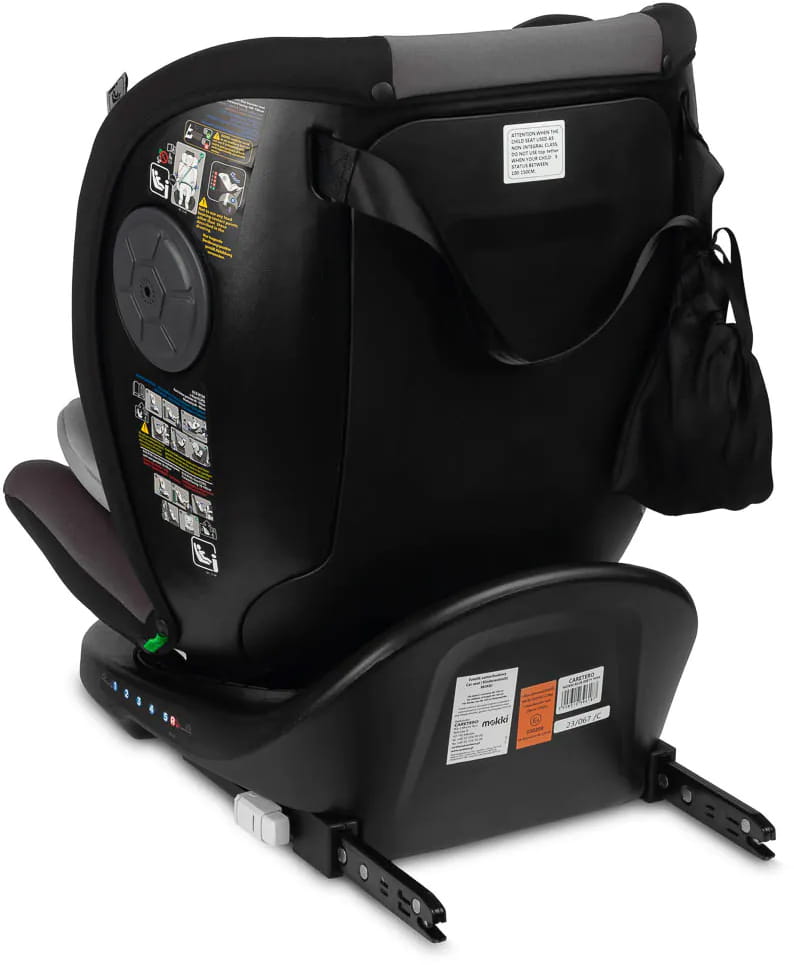 Caretero Mokki i-Size jest fotelikiem samochodowym stworzonym w oparciu o homologację i-Size. Fotelik zaprojektowano z myślą o dzieciach od 40 do 150 cm, posiada w pełni obrotowe, 360-stopniowe siedzisko z możliwością ustawienia przodem lub tyłem do kierunku jazdy. Siedzisko fotelika pokrywa delikatna, miękka w dotyku tapicerka oraz posiada ergonomiczną wkładkę dla niemowląt.