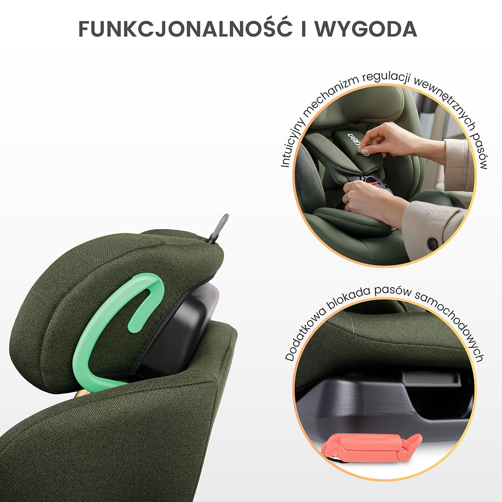 Łączy bezpieczeństwo normy i-Size z elastycznym montażem pasem samochodowym w dwóch kierunkach (RWF/FWF), dzięki czemu dopasujesz go do większości aut i etapów rozwoju dziecka.