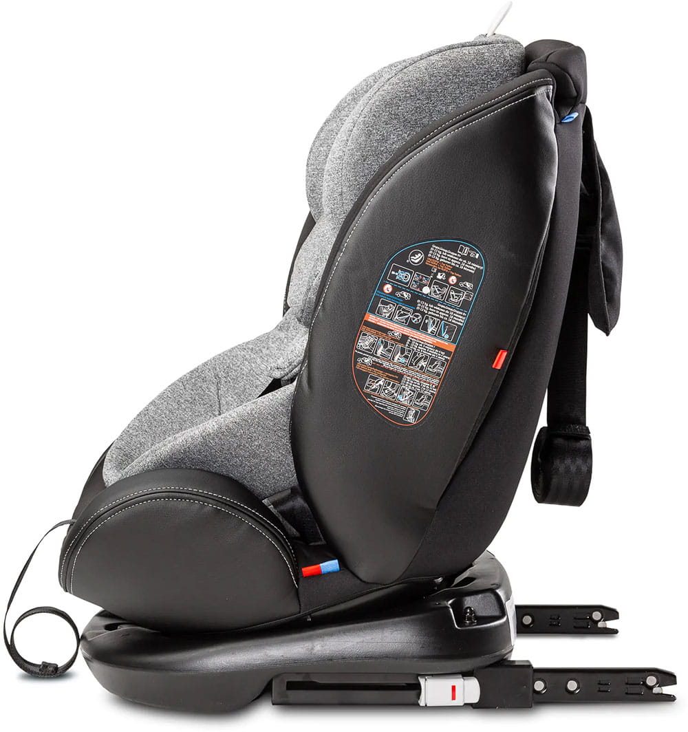 Fotelik jest osadzony na bazie umożliwiającej obrót siedziska o 360 stopni. Dzięki temu możemy wygodnie zmienić kierunek jazdy bez wypinana fotelika oraz zwrócić dziecko w kierunku drzwi, do rodzica, w trakcie zapinania pasów.