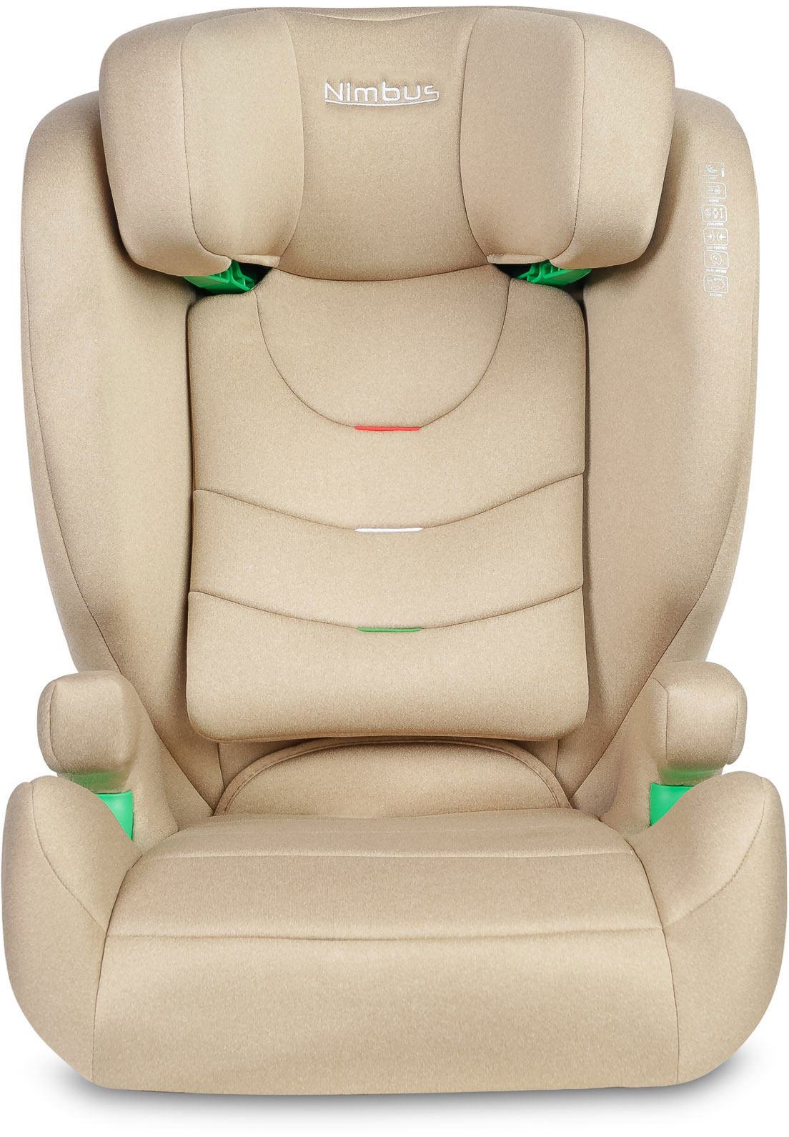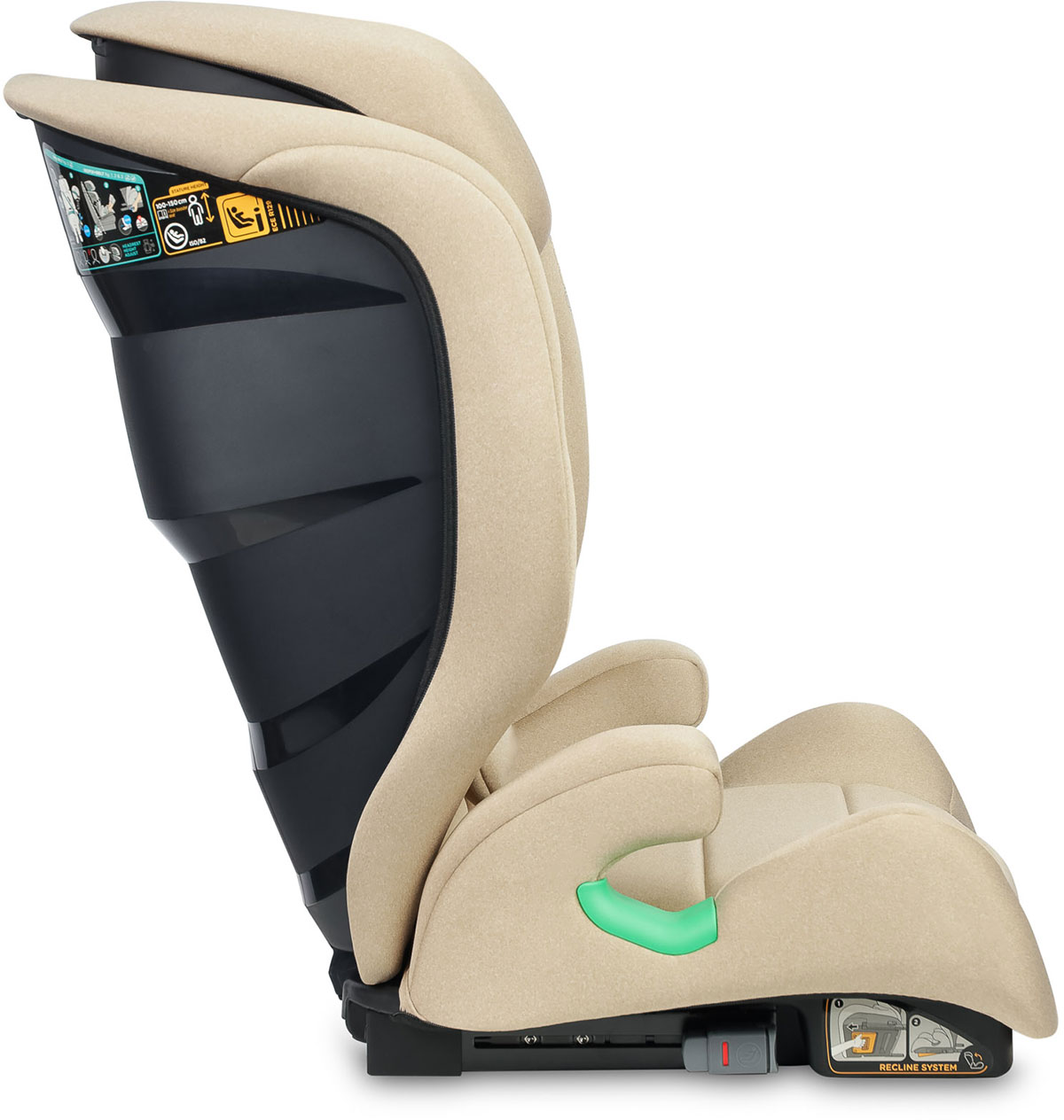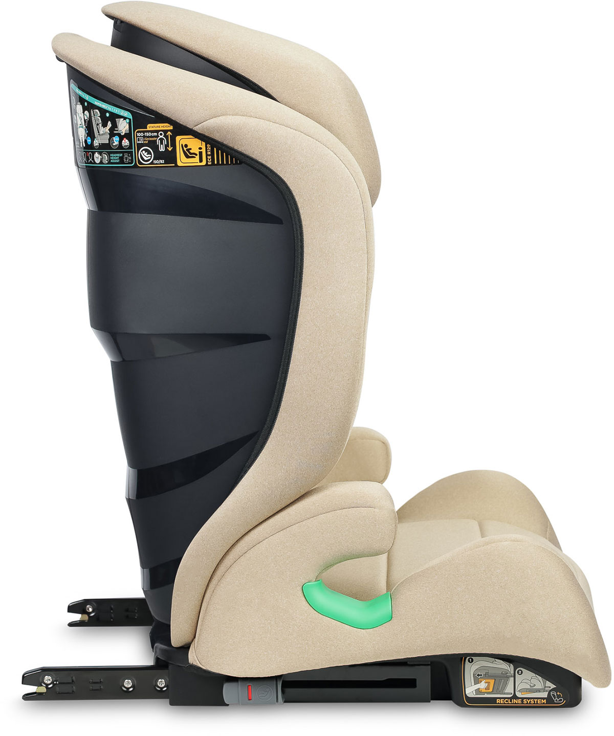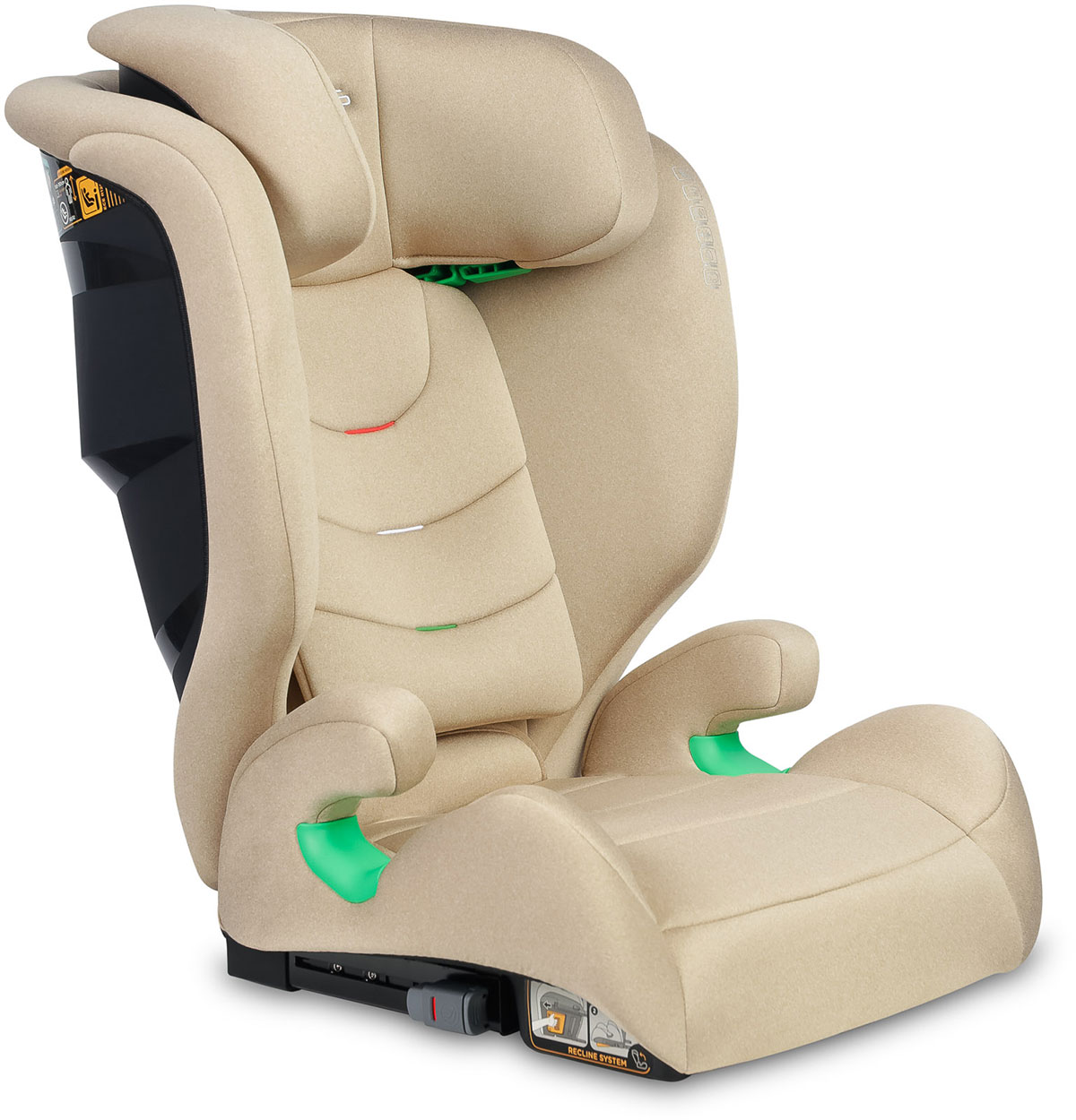 Dzięki zielonym prowadnicom, instalacja fotelika w samochodzie jest o wiele prostsza - wskaźniki informują rodzica o tym, którędy powinien przebiegać pas naramienny oraz biodrowy. Dodatkowym punktem zaczepienia są złącza Isofix.