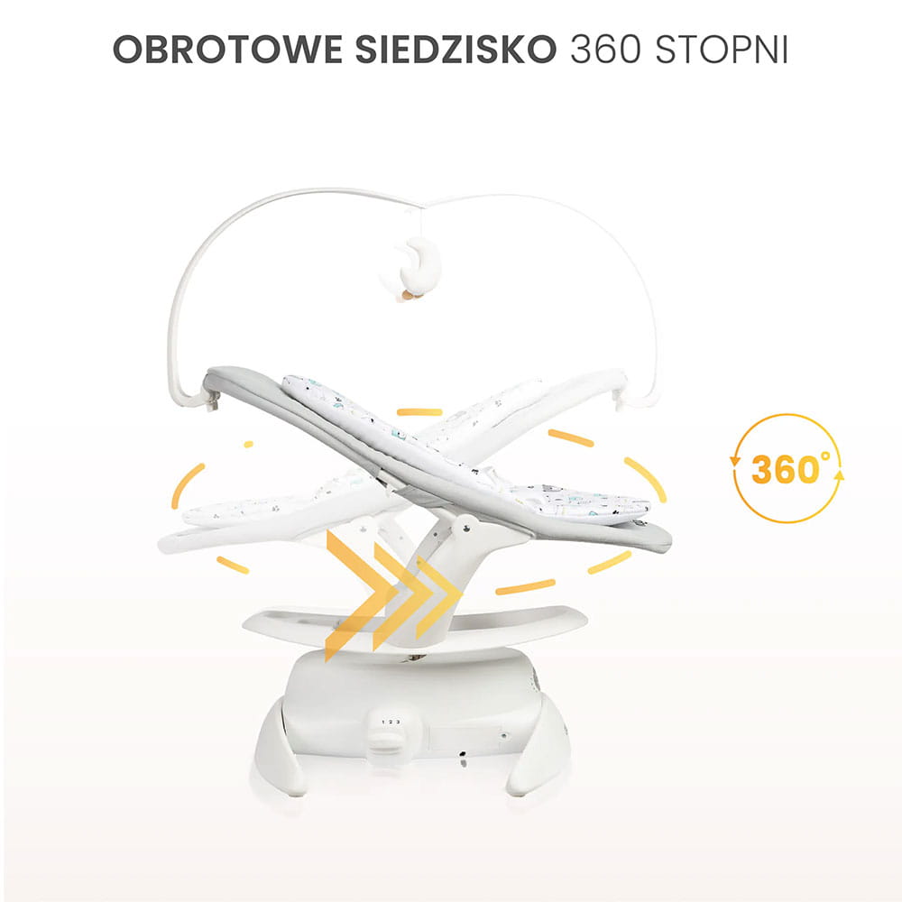Obrotowe siedzisko 360° to nowoczesna funkcja, która wynosi komfort użytkowania leżaczka na wyższy poziom. Dzięki możliwości obrotu w pełnym zakresie, z łatwością dostosujesz pozycję siedziska do potrzeb dziecka – bez konieczności przesuwania całego bujaczka. To wygodne i funkcjonalne rozwiązanie, które pozwala maluszkowi odkrywać otoczenie z różnych perspektyw, a Tobie – mieć go zawsze na oku.