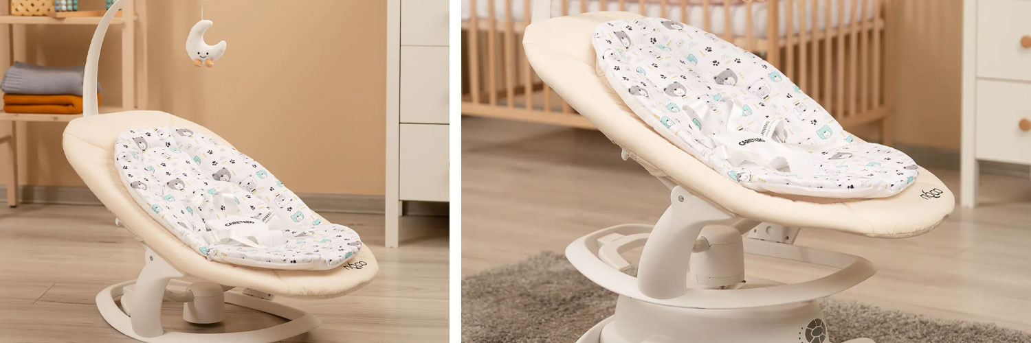 Z myślą o maksymalnym bezpieczeństwie Twojego dziecka, leżaczek Noco został wyposażony w solidne pasy zabezpieczające, które skutecznie chronią maluszka przed wypadnięciem. Nowoczesny system detekcji ruchu intuicyjnie reaguje na aktywność dziecka, automatycznie dostosowując rytm bujania – łagodząc niepokój i zapewniając poczucie ukojenia dokładnie wtedy, gdy jest to najbardziej potrzebne.