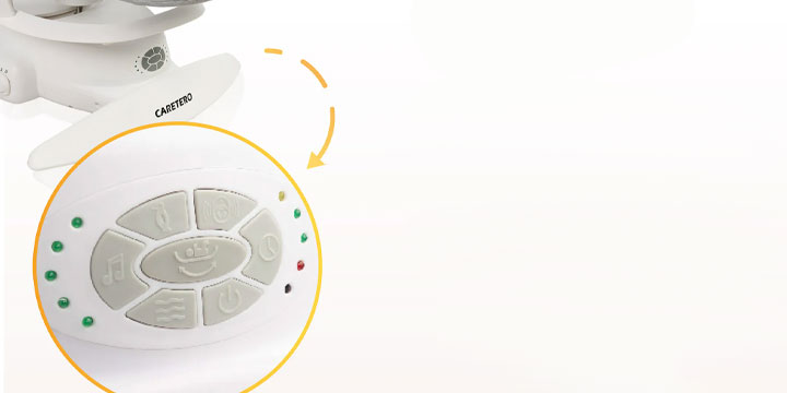 Zaawansowany, a zarazem prosty w obsłudze panel sterowania pozwala precyzyjnie dopasować działanie bujaczka do nastroju i potrzeb maluszka. 5-stopniowa regulacja prędkości bujania oraz praktyczny timer zapewniają pełną kontrolę nad czasem i intensywnością kołysania. Aż 11 kojących melodii, uzupełnionych o relaksujące odgłosy natury – szum wody i śpiew ptaków – tworzy idealne warunki do wyciszenia i spokojnego snu.