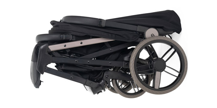 Innowacyjny mechanizm pozwala na błyskawiczne złożenie spacerówki jedną ręką. Po złożeniu wózek sam stoi, co chroni tapicerkę przed zabrudzeniem i ułatwia przechowywanie w restauracji czy w domu.