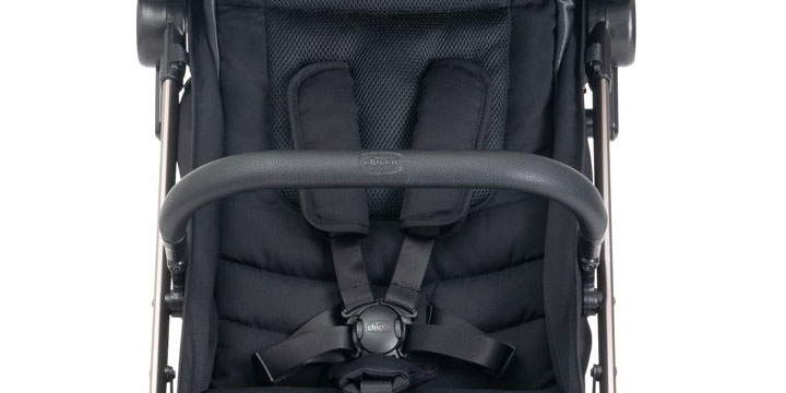 5-punktowe pasy bezpieczeństwa z miękkimi otulinkami oraz barierka ochronna (pałąk) zapewniają dziecku stabilną pozycję, nie ograniczając przy tym jego swobody ruchów.