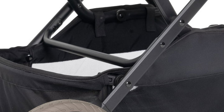 Mimo kompaktowej formy, pod siedziskiem znajduje się łatwo dostępny kosz, który pomieści niezbędne akcesoria dziecięce lub codzienne zakupy.