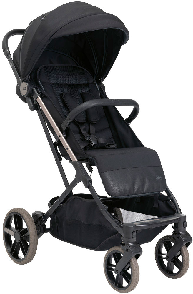 Wytrzymałe koła z wysokiej jakości tworzywa oraz amortyzatory na przedniej osi gwarantują płynną jazdę, sprawiając, że ten wózek spacerowy Chicco prowadzi się lekko i precyzyjnie nawet na nierównym chodniku.