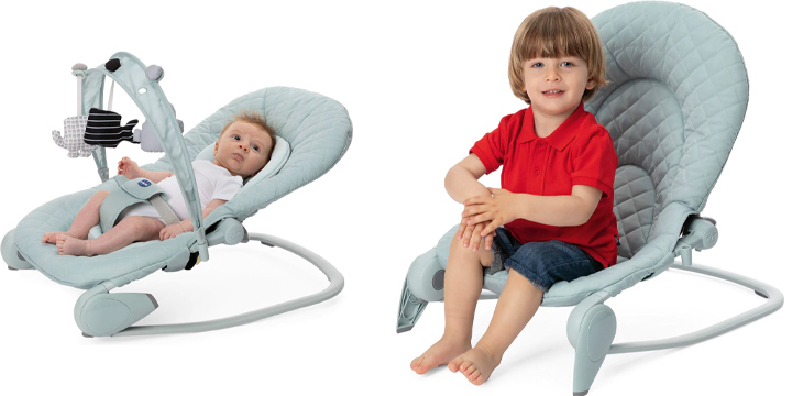Leżaczek Chicco Hoopla jest produktem zaprojektowanym z myślą o maluszkach od narodzin do 18 kg. Dzięki temu, ze można go używać jako leżaczka umożliwiającego noworodkowi leżenie na płasko, może być używany od 1. dnia życia, natomiast po tym, jak maluch opanuje umiejętność samodzielnego siadania, możemy przekształcić leżaczek w krzesełko, siedzonko dla niemowląt.