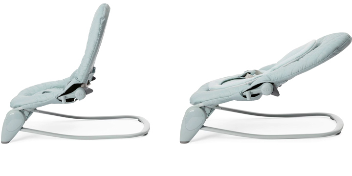 Oparcie leżaczka reguluje się w 4 pozycjach, przez co umiejętnie dostosowuje się do etapu aktywności i rozwoju dziecka.