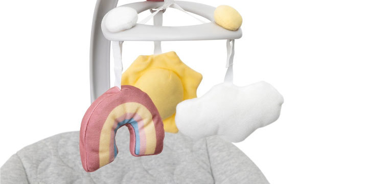 Zen Wave zapewnia dziecku stymulującą i radosną zabawę dzięki kolorowemu pałąkowi z zawieszkami - trzy miękkie pluszowe zabawki, inspirowane żywiołami pogody, zachęcają do chwytania, poruszania i odkrywania świata.